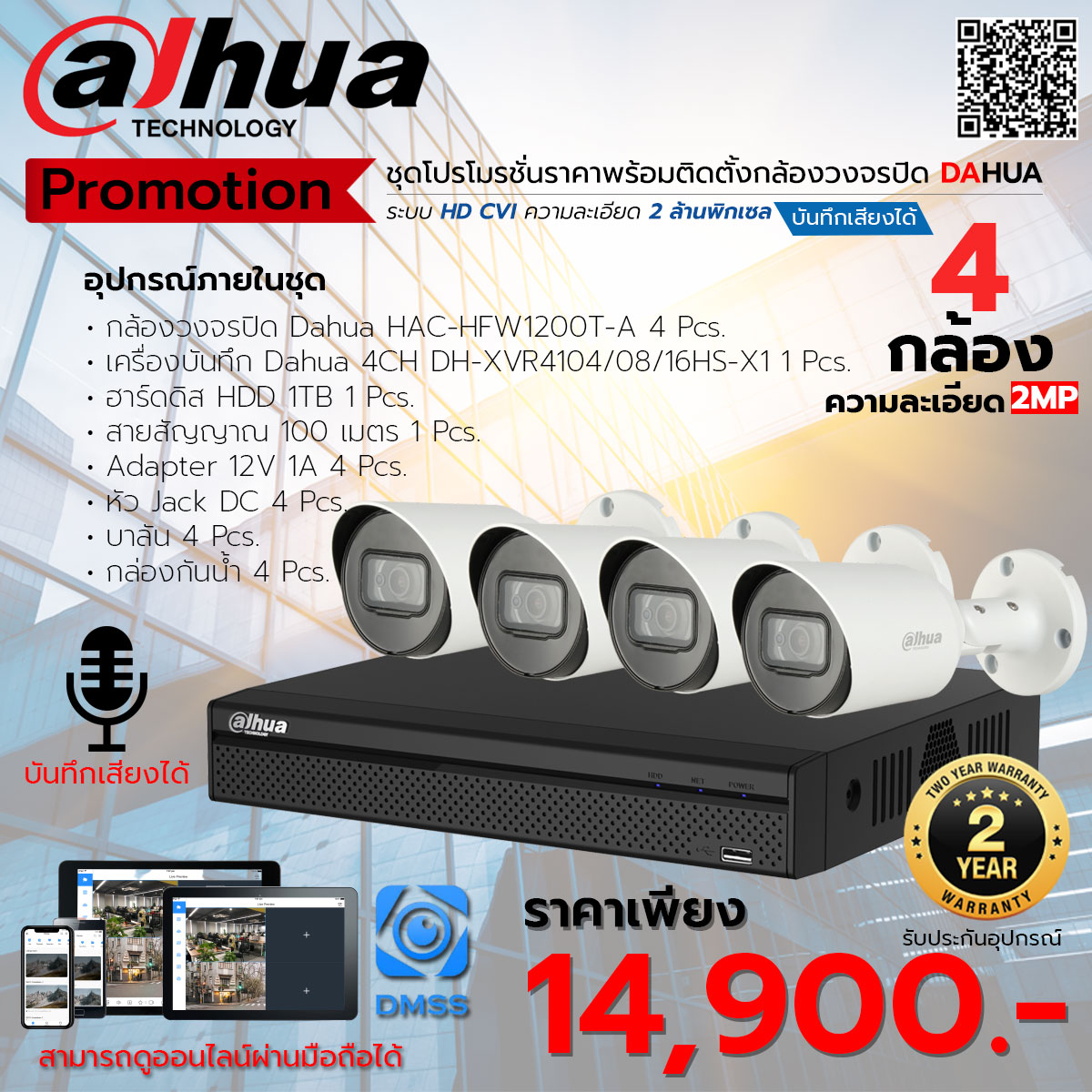บันทึกภาพสีตลอด 24 ชม. มีไมค์ในตัว
